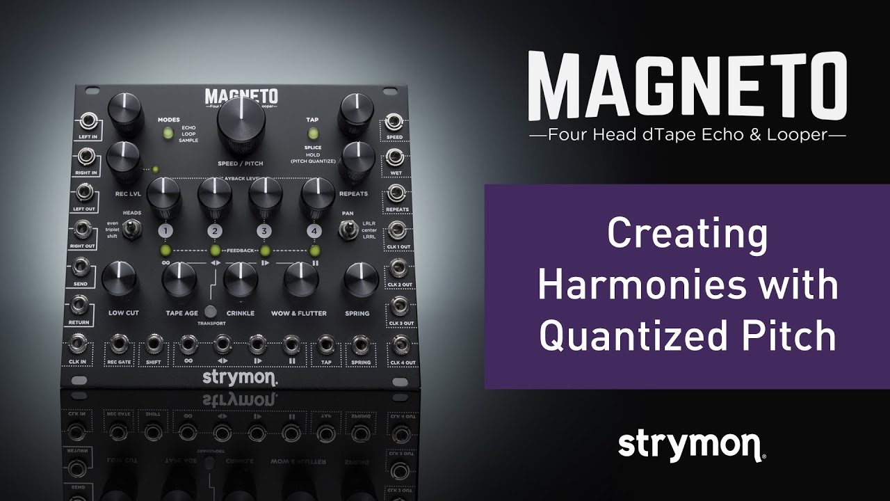Magneto self-oscillates in ever-evolving ways as the Speed knob is manipulated to change the pitch of oscillation. Combining this with Magneto’s Pitch Quantize mode, or controlling the Pitch with an external 1V/oct CV results in a unique sound generator in its own right.