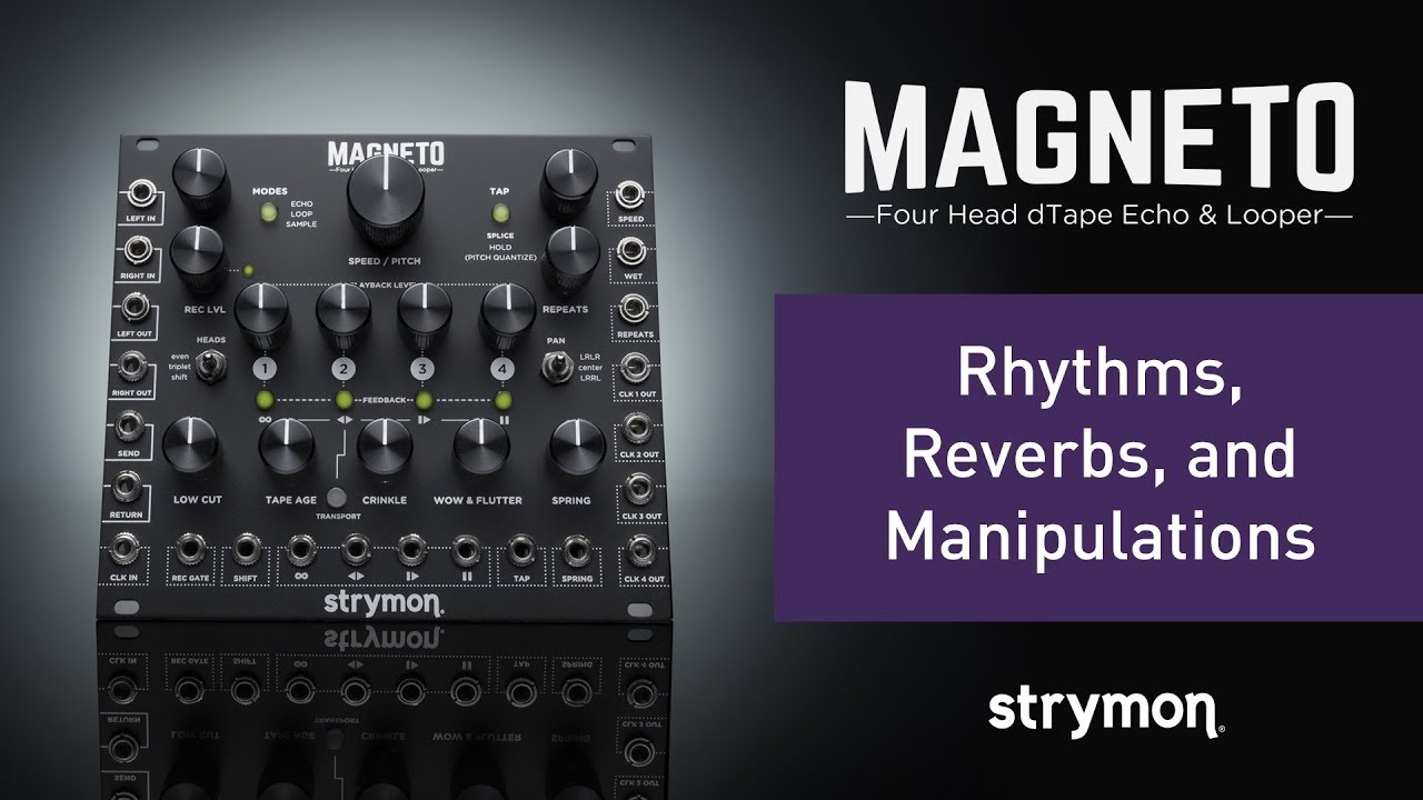 Packed with powerful features while maintaining intuitive playability, Magneto is a stereo multi-head tape delay that also functions as a looper, phrase sampler, vintage spring reverb unit, phase-aligned clock multiplier, chaotic oscillator, zero latency sub-oscillator and more, with extensive CV I/O.